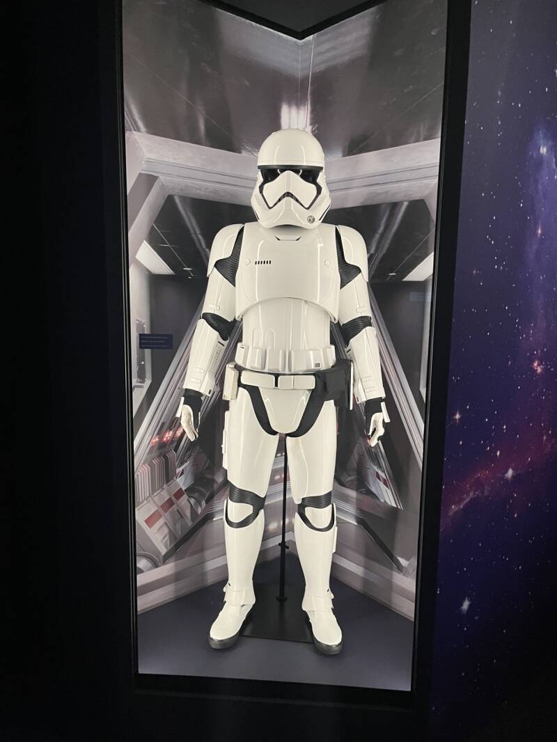 There was an entire section dedicated to Marvel which was so cool! The room was filled with epic props, legendary costumes, and jaw-dropping details from some of the biggest blockbusters in the MCU. I got to see Black Widow’s suit up close (yes, the actual suit!), and it was even more impressive in real life. Right next to it was Captain America’s shield which was an absolute highlight. Every single piece had that “wow” factor, and seeing them in person made the Marvel Universe feel even more real. There were also some very cool nods to Star Wars, with lightsabers, props and costumes sprinkled throughout.